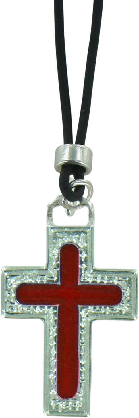 Croce in metallo nichelato con smalto rosso e laccio - 3,8 cm