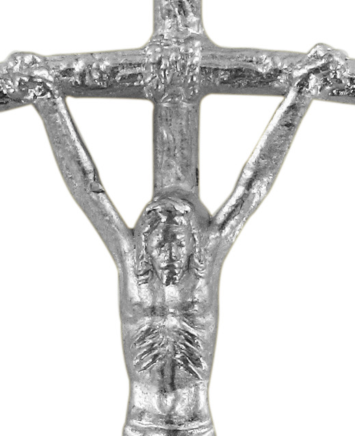 Croce pastorale in metallo argentato con Cristo riportato - 5,8 cm