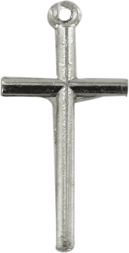 Croce tondino con Cristo stampato in metallo ossidato di misura 2,5 x 1,2 cm.