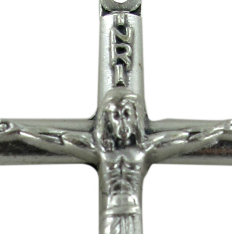 Croce tondino con Cristo stampato in metallo ossidato - 3,5 cm