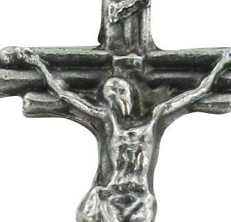 Croce tre tronchi con Cristo riportato in metallo ossidato da 2,5 cm.