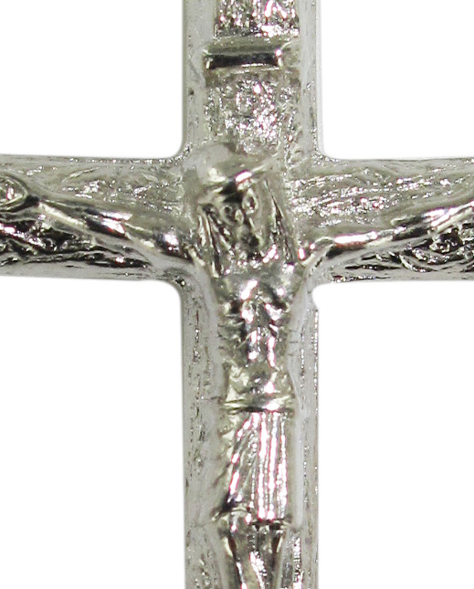 Croce tronchetto con Cristo stampato in metallo nichelato - 5,5 cm