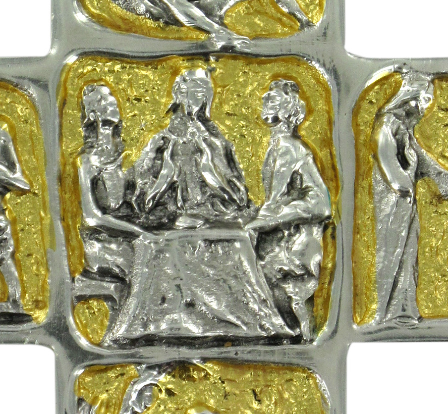 Croce Vescovo pettorale in metallo bicolore raffigurante scene di vita di Gesù - 8,7 cm