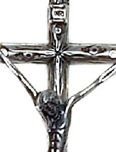 STOCK: Croce in metallo argentato con Cristo riportato di misura 10,5 x 3,5 cm.