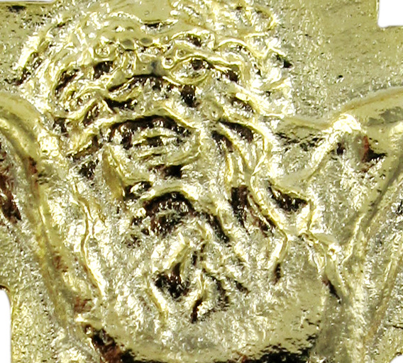 STOCK: Croce in metallo dorato raffugurante il Volto di Cristo.