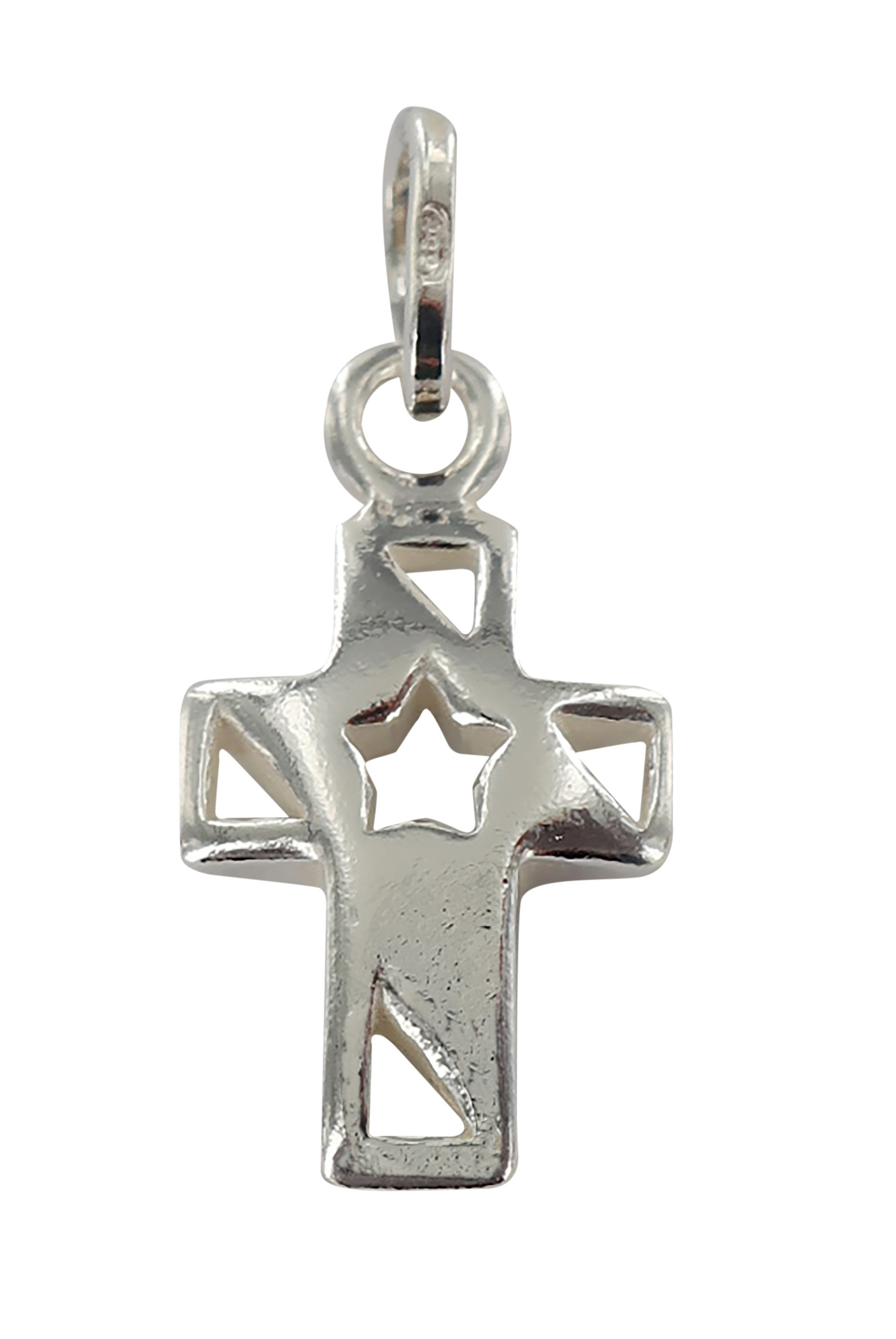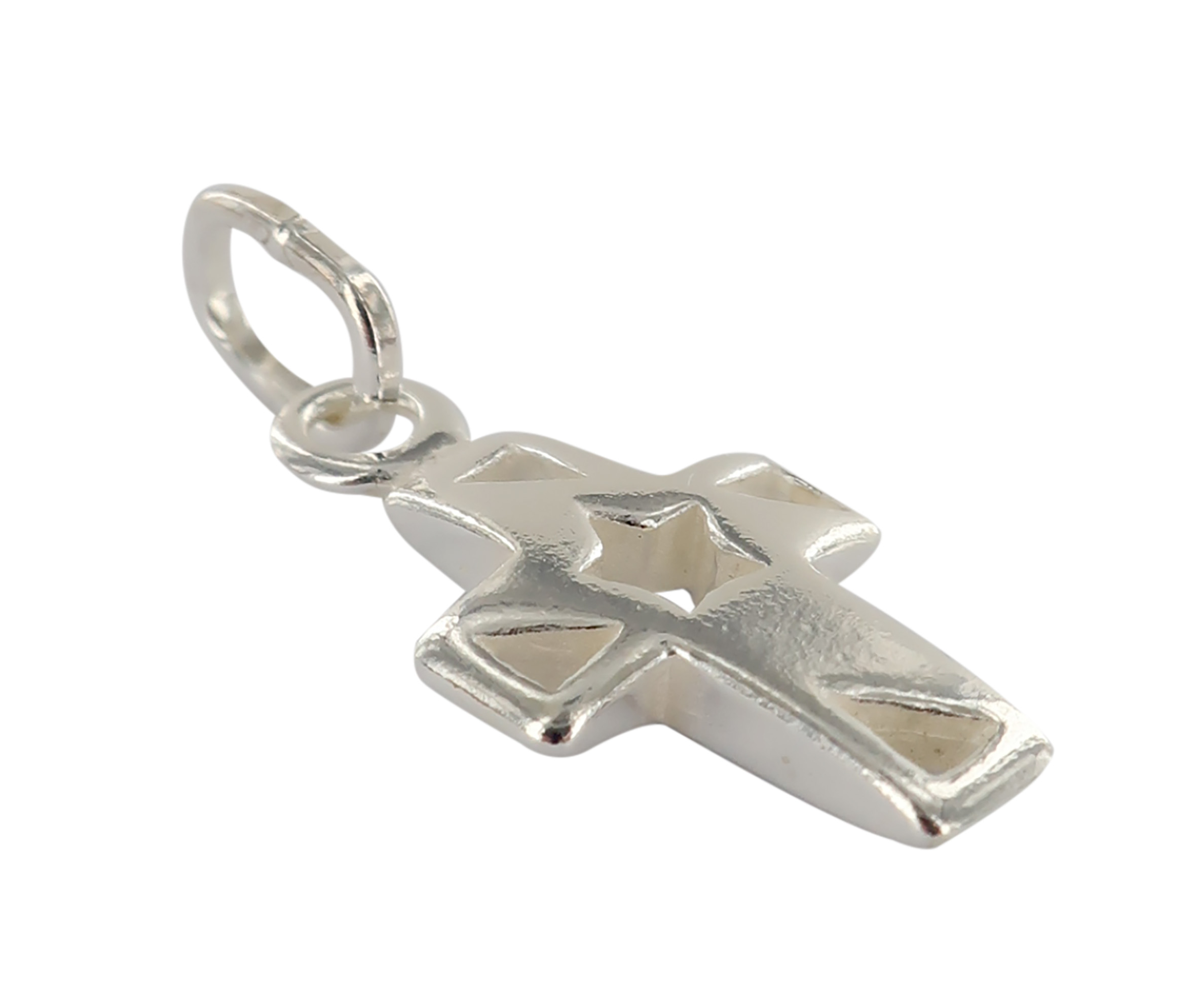 Croce in argento 925 (riportato sulla punzonatura) con stella traforata di altezza 1,5 cm.
