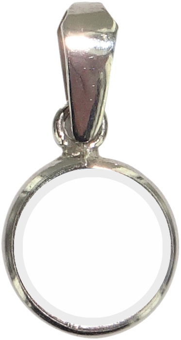 La medaglietta di cm 1 rappresenta la luna con le stelle stampata su porcellana con sfondo di colore blù e incastonato in un profilo di argento lucido.