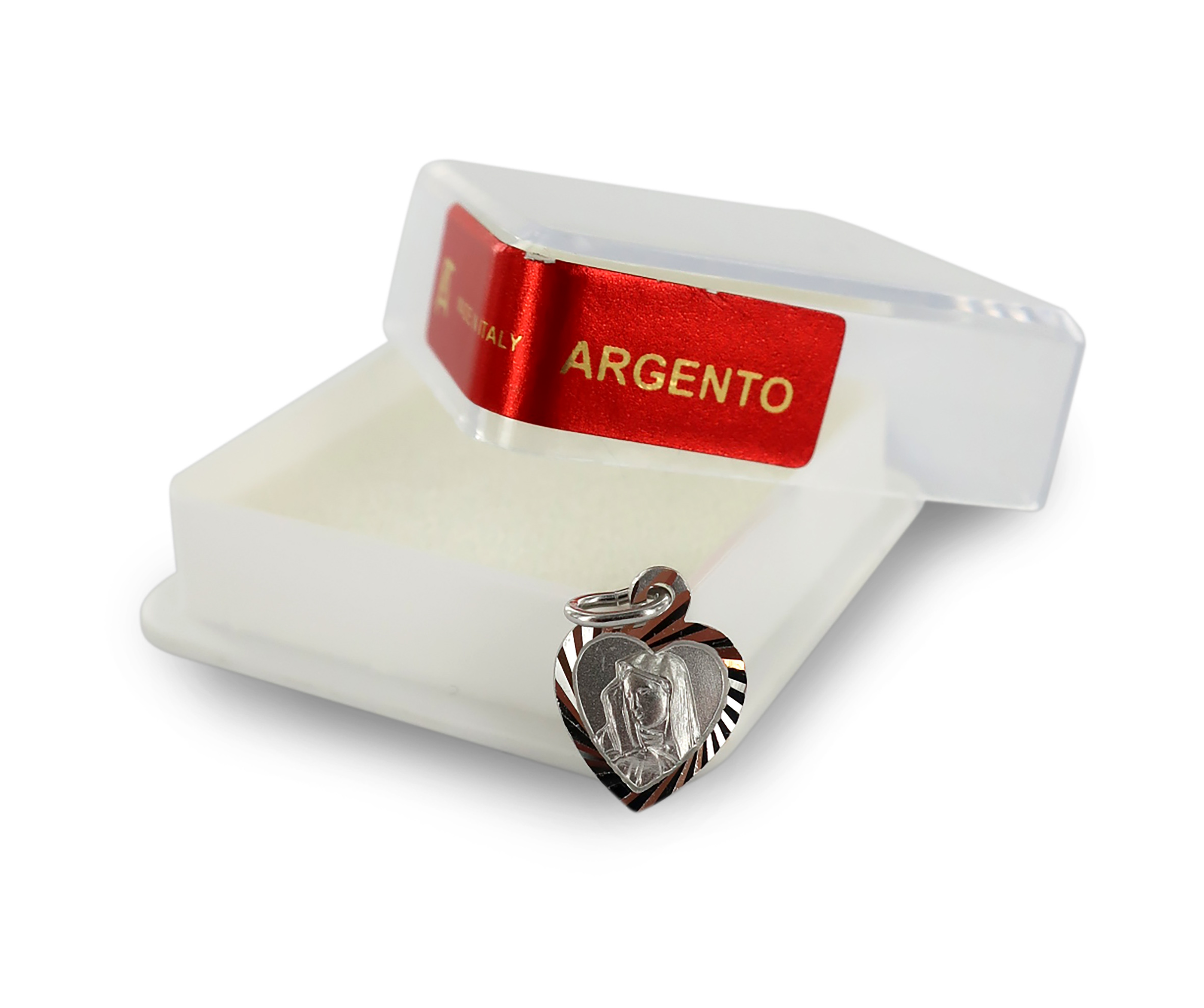 Medaglia Madonna Addolorata in argento 925 a forma di cuore - 1,4 cm