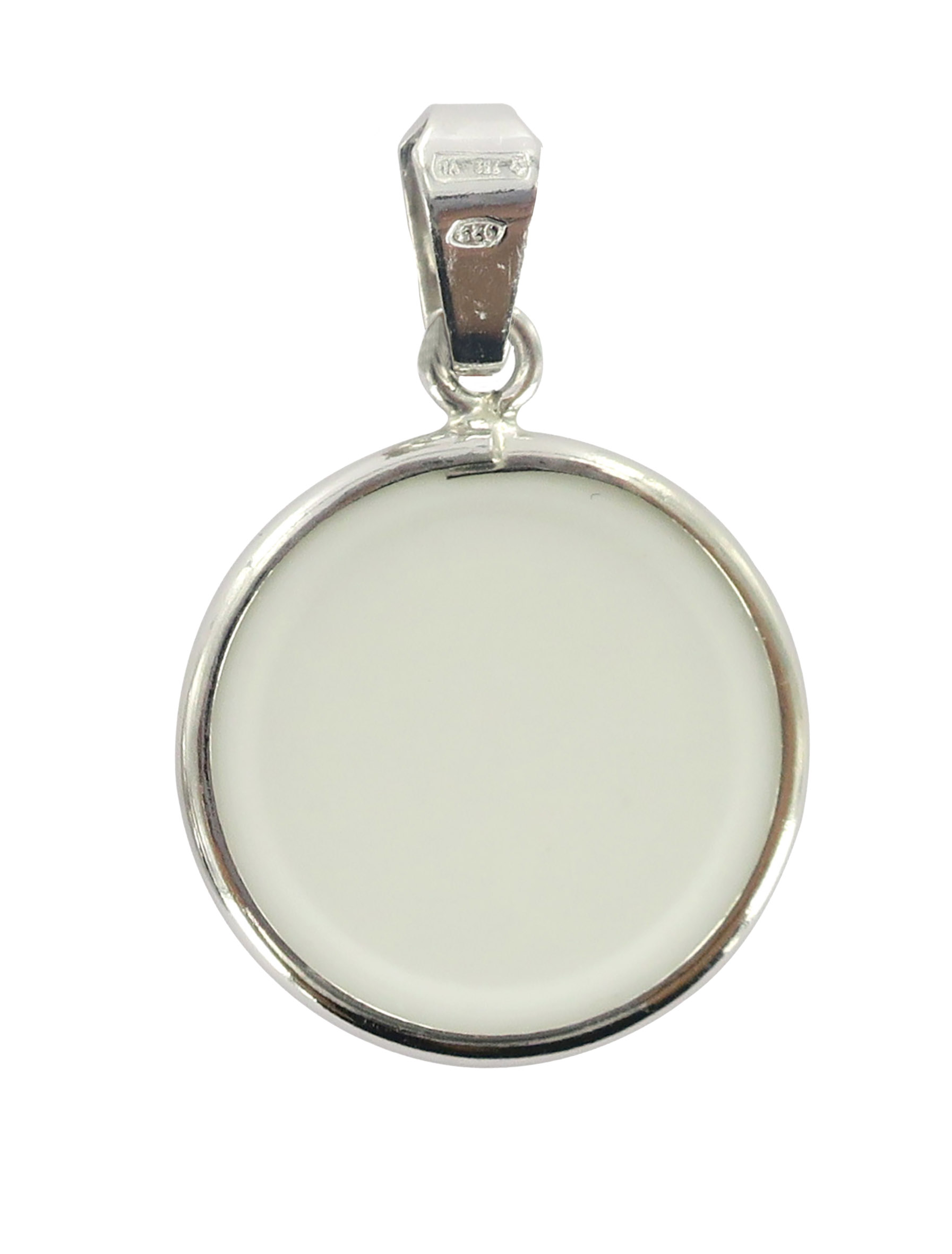 Il bordo in argento 925 incornicia il tutto. Il diametro è di cm 1,8. Il peso è di 1,5 gr. Realizzato in Italia.