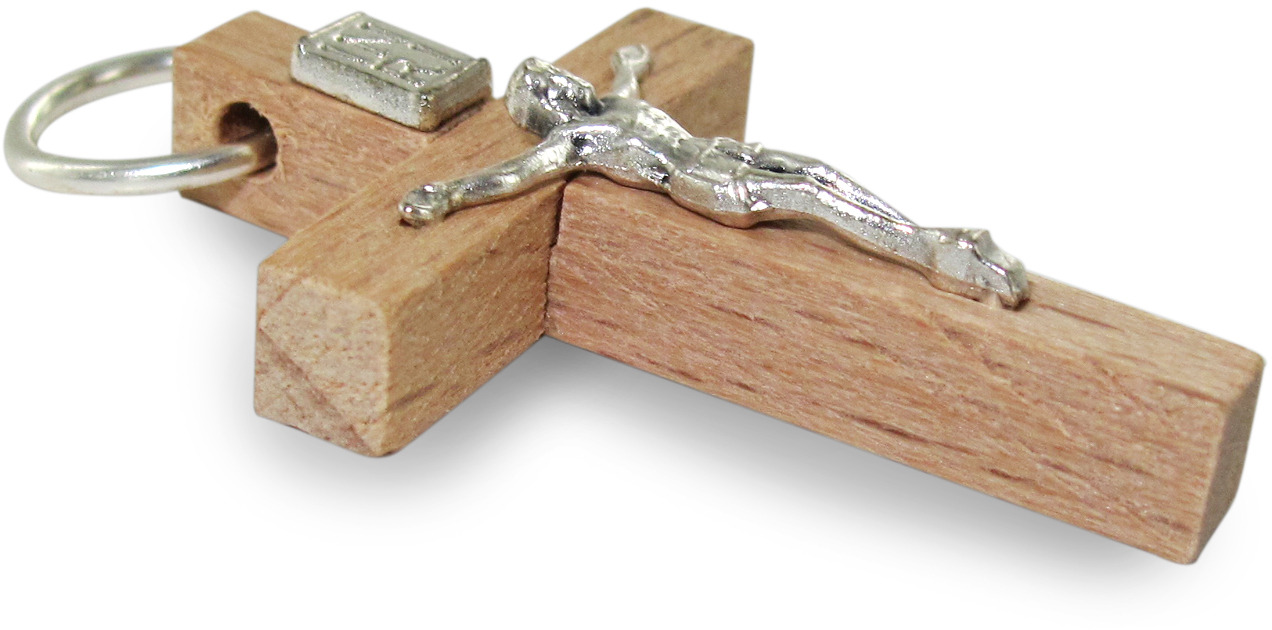 Croce in legno color grezzo con Cristo - 3,5 cm