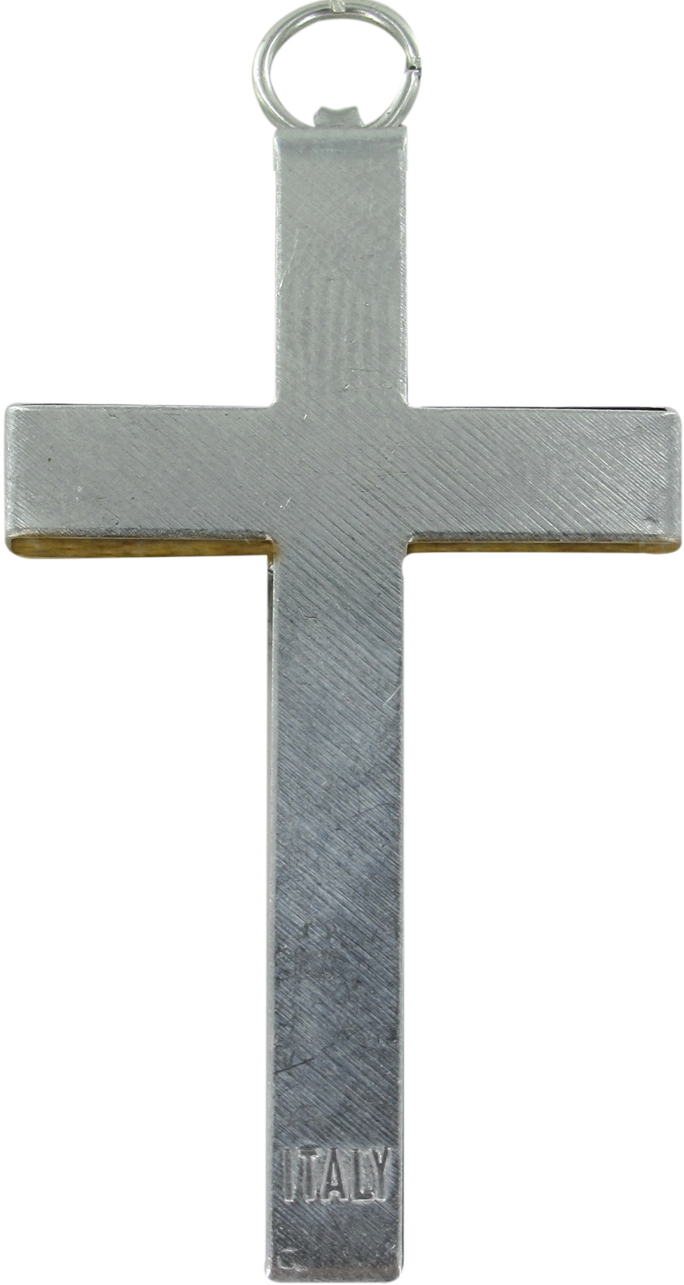 I dettagli, il retro, l'iscrizione e la croce sono realizzati in metallo argentato.