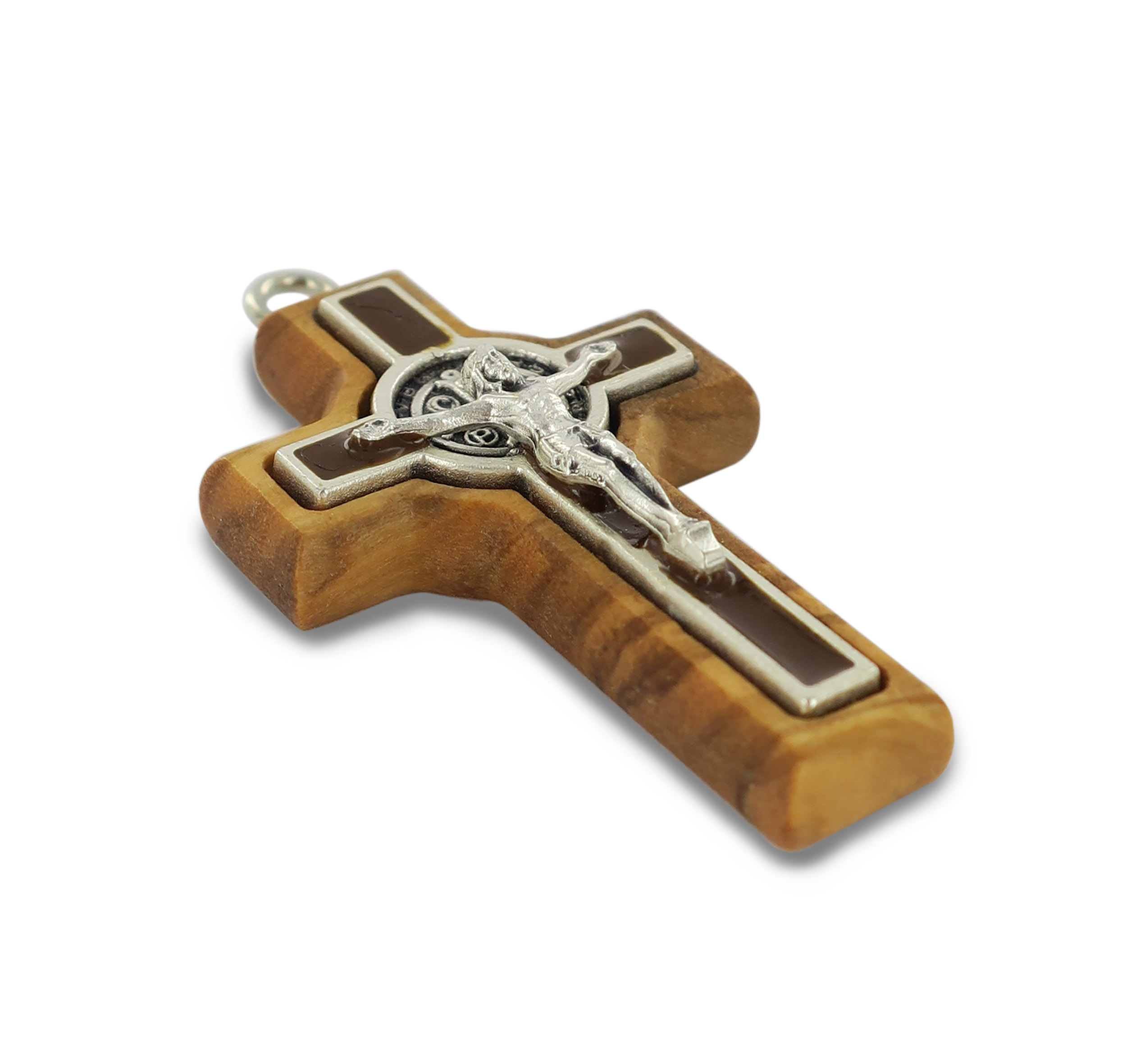 Croce San Benedetto in legno d'ulivo e metallo con cordone - 4 cm