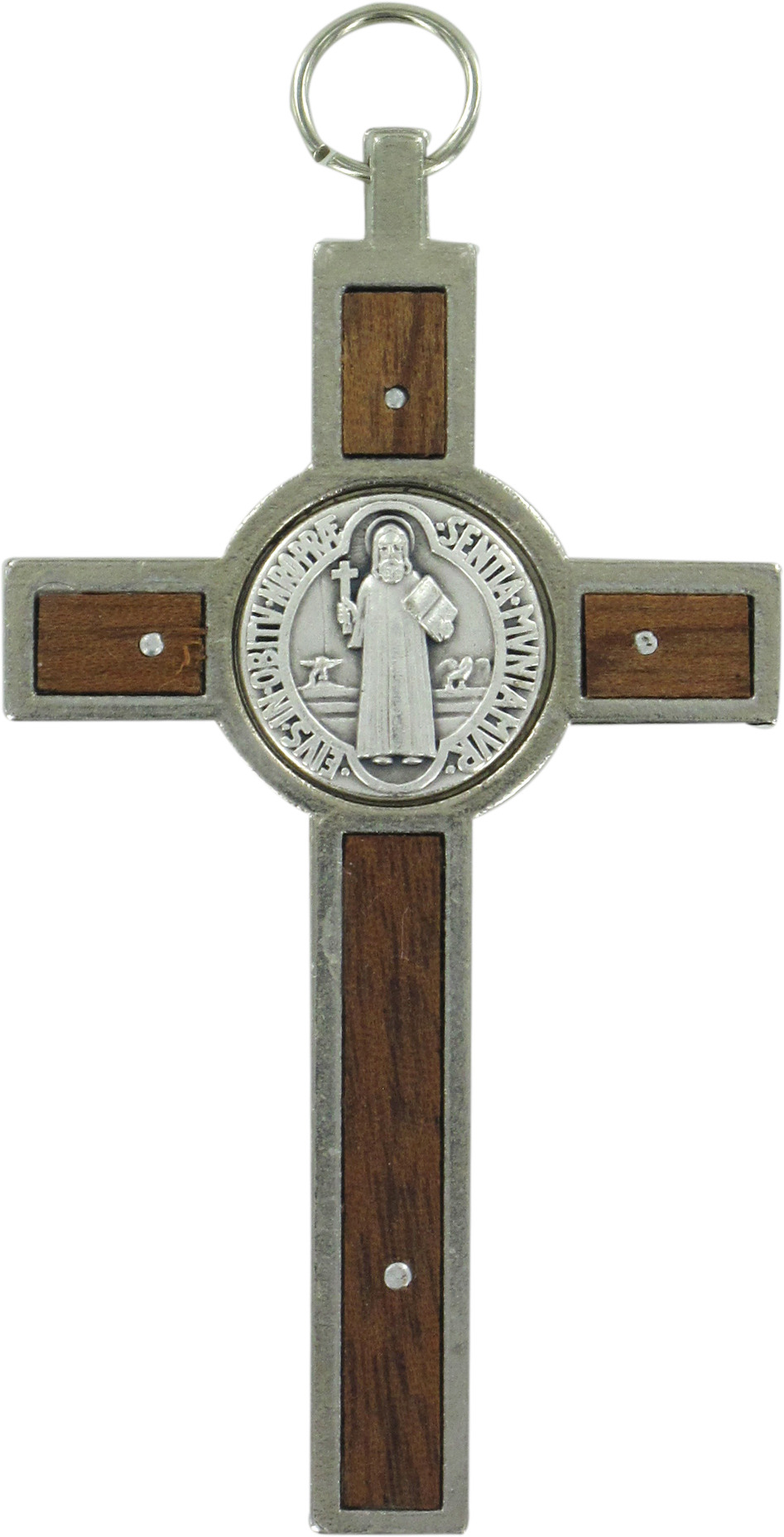Croce San Benedetto in legno naturale e metallo - 8 cm
