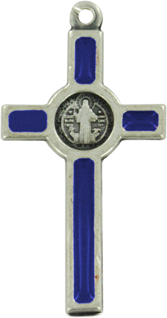 Croce San Benedetto in metallo nichelato con smalto blu - 3,5 cm