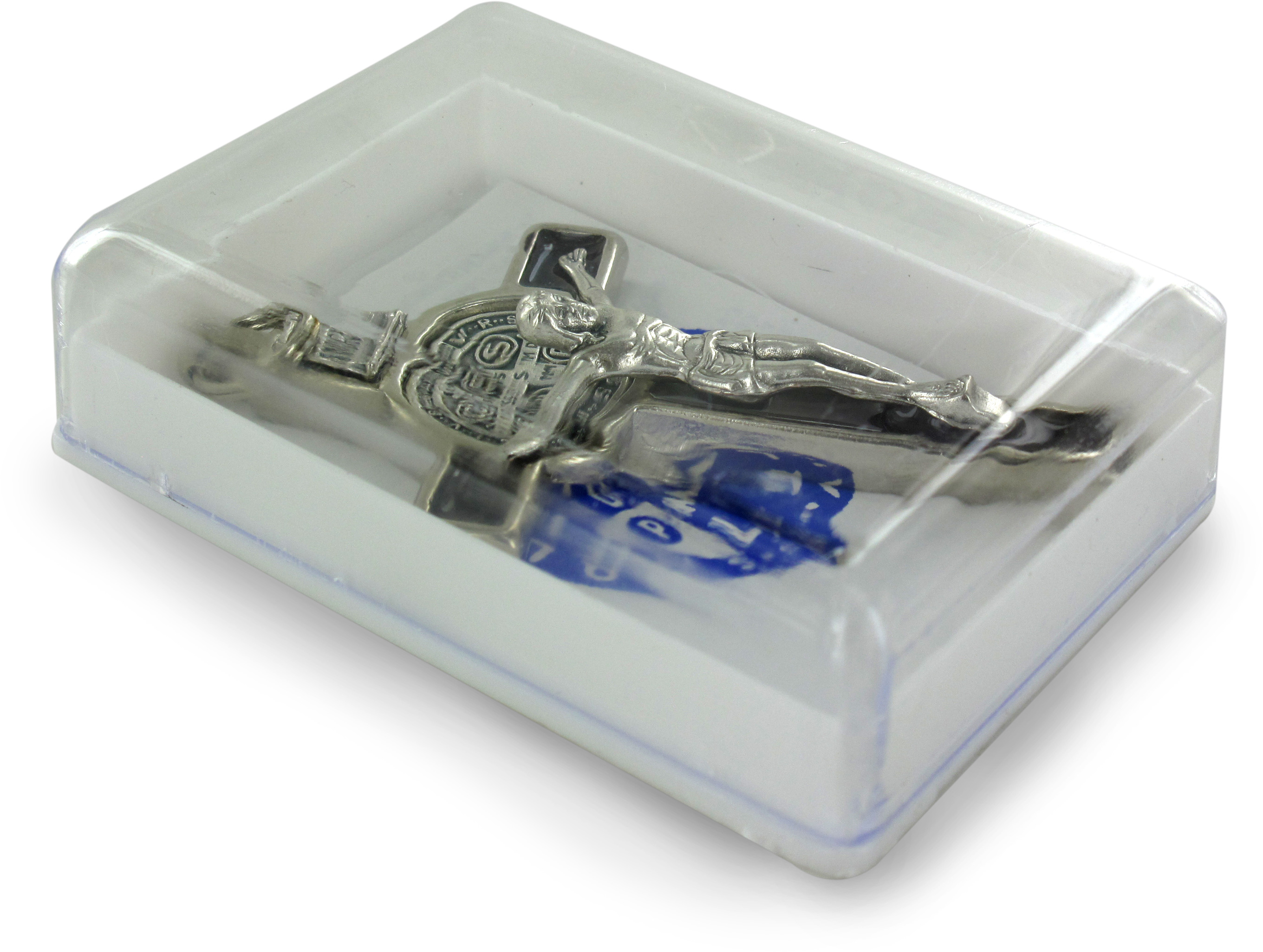 Croce San Benedetto in metallo nichelato con smalto blu - 8 cm