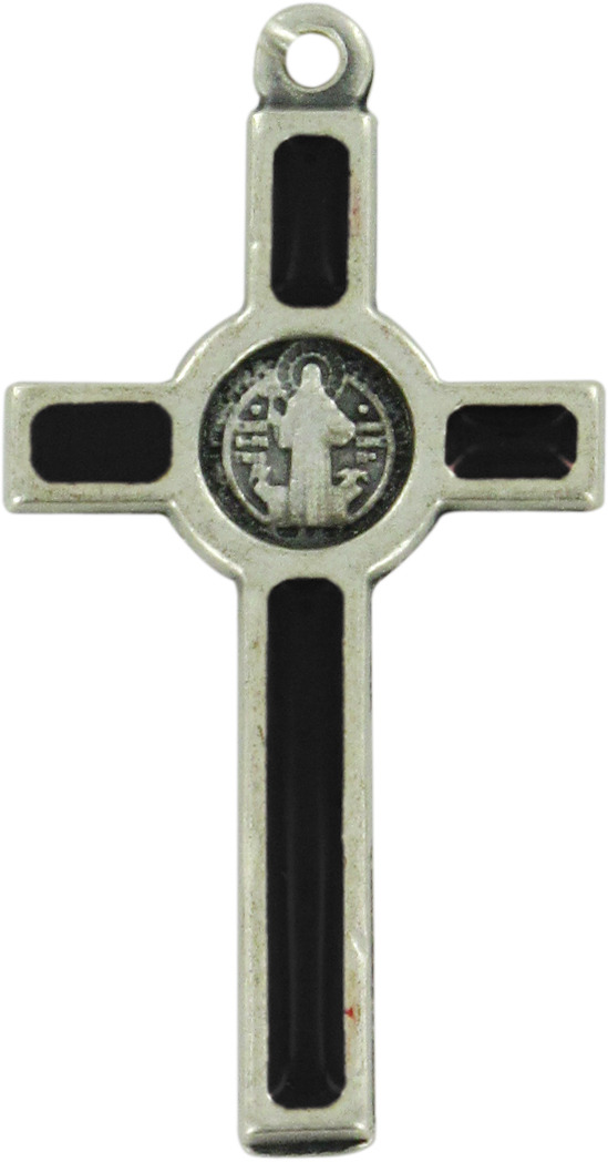 Croce San Benedetto in metallo nichelato con smalto nero - 3,5 cm
