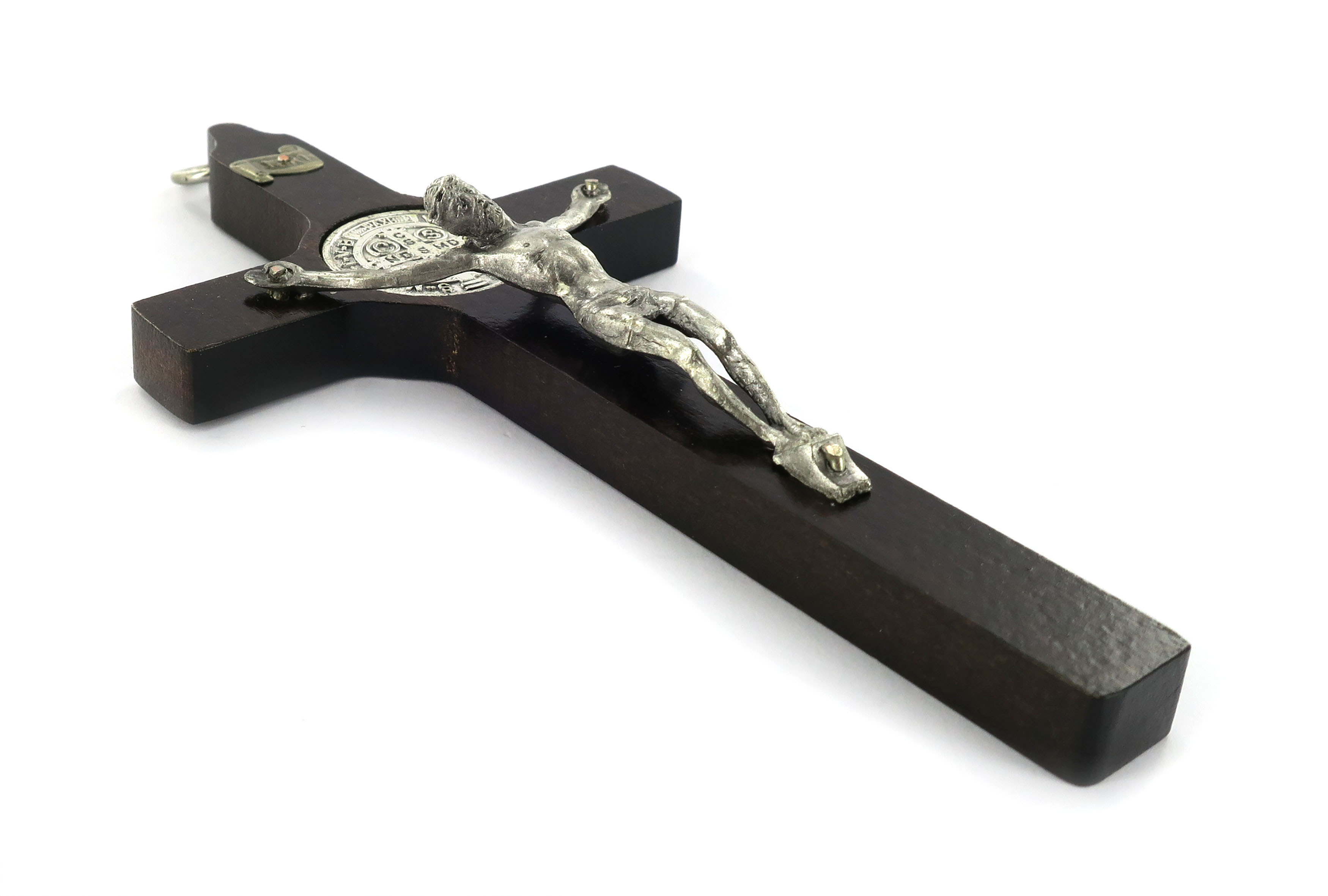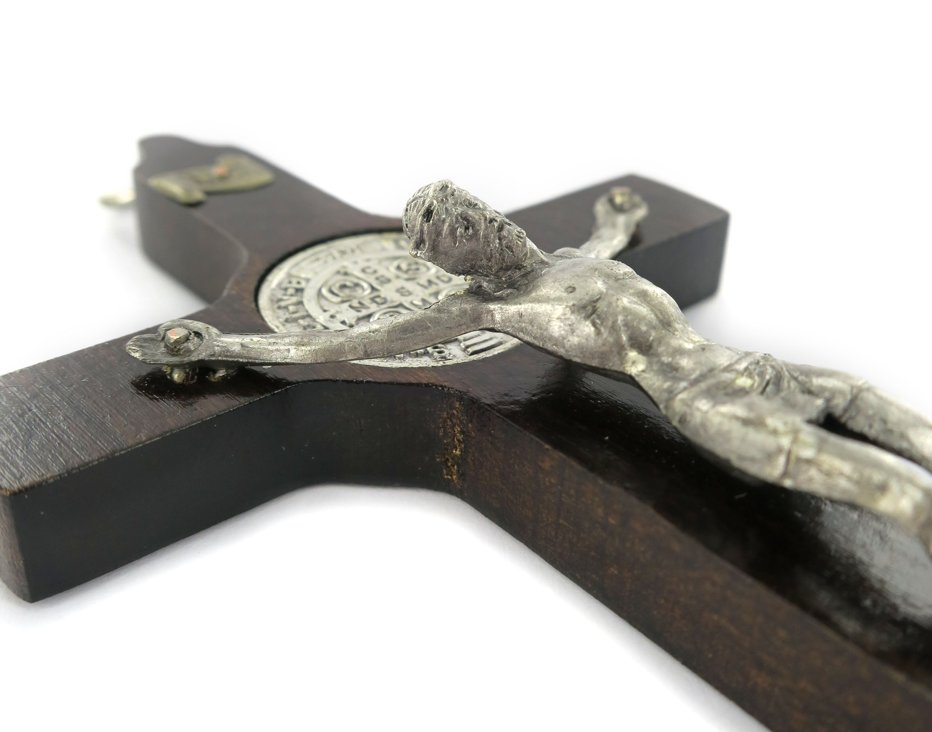 Crocifisso di San Benedetto in legno con Cristo in metallo argentato. Altezza della croce: 12 cm.