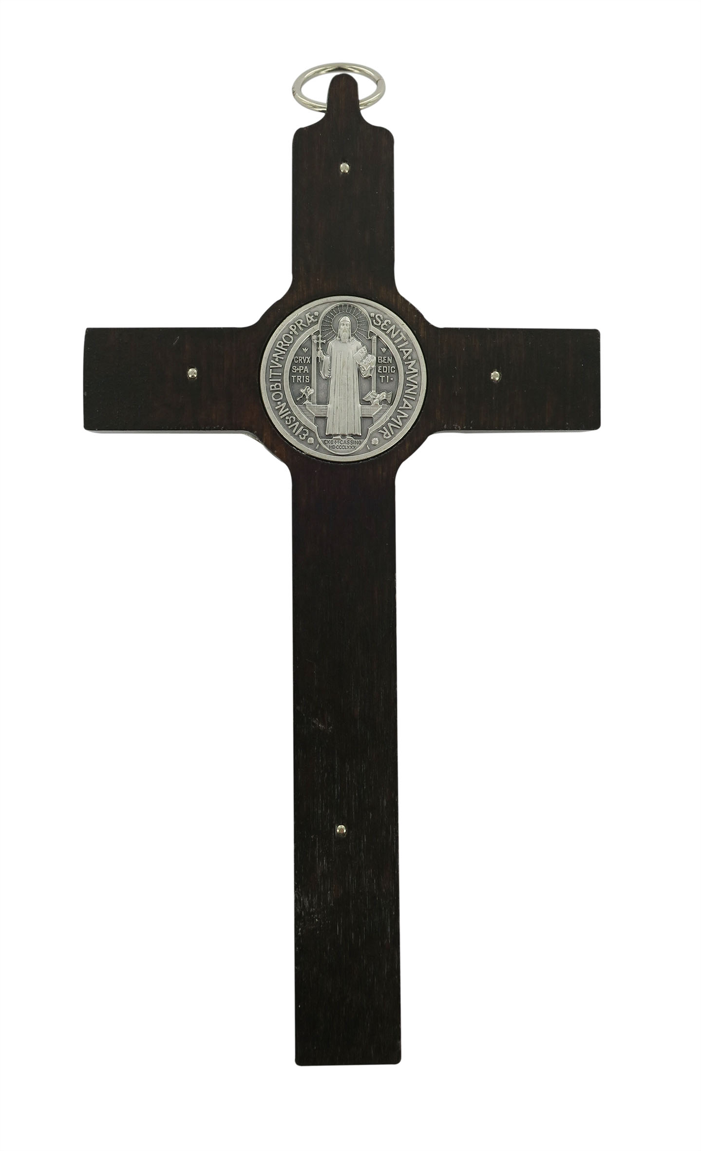 Crocifisso San Benedetto in legno di noce con Cristo in metallo - 20 cm