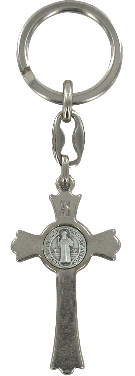 Portachiave della croce di San Benedetto in metallo nichelato.