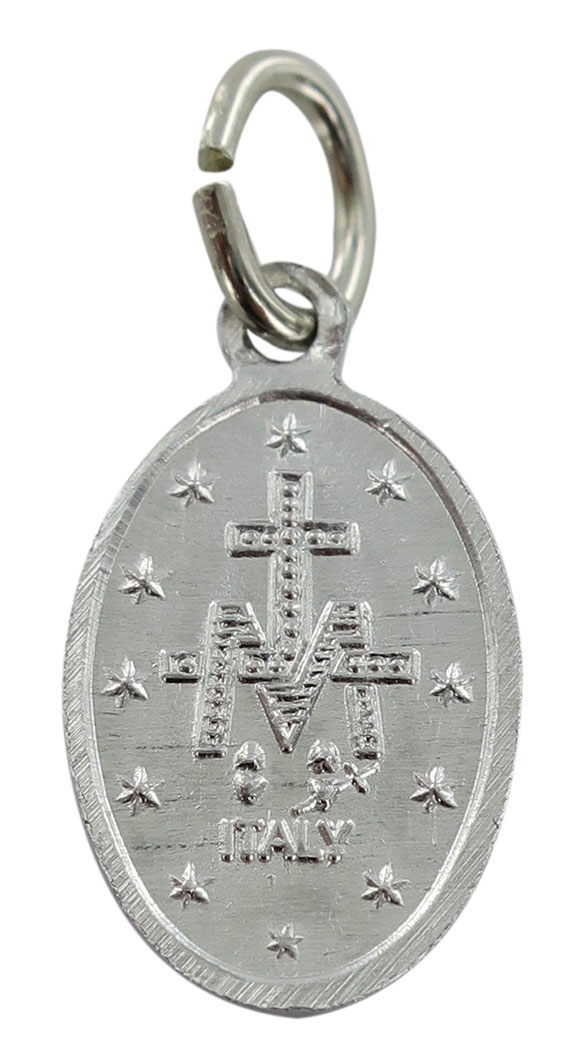 Medaglia Madonna Miracolosa in alluminio con smalto azzurro - 1,5 cm