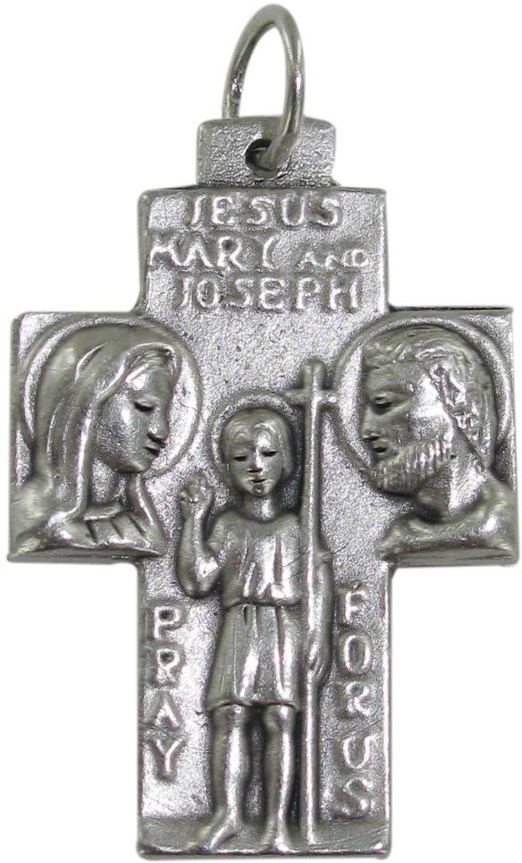 Croce San Cristoforo + Sacra Famiglia in metallo ossidato - 2,5 cm