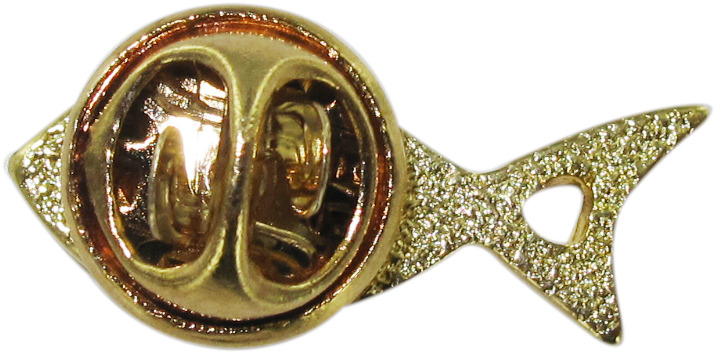 Spilla a forma di pesce stilizzato traforato di misura 2,5 cm.