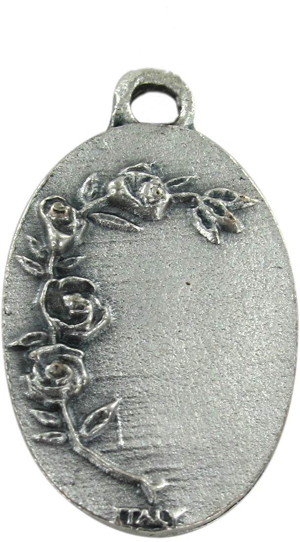 Medaglia Angelo Custode ovale in metallo ossidato mm 20 con retro fiore