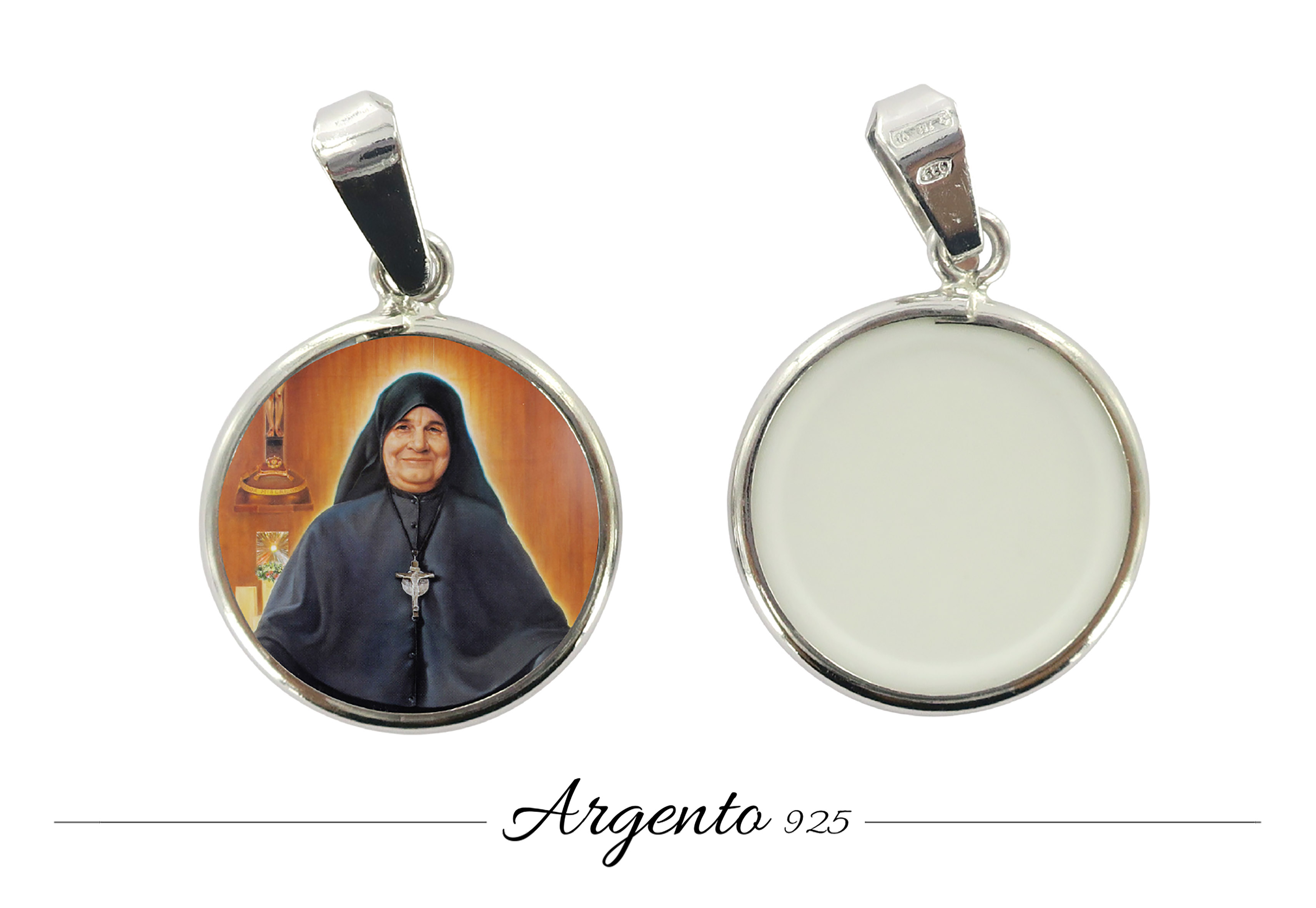 Medaglia Beata Madre Speranza di Gesù tonda in argento 925 e porcellana - 1,8 cm