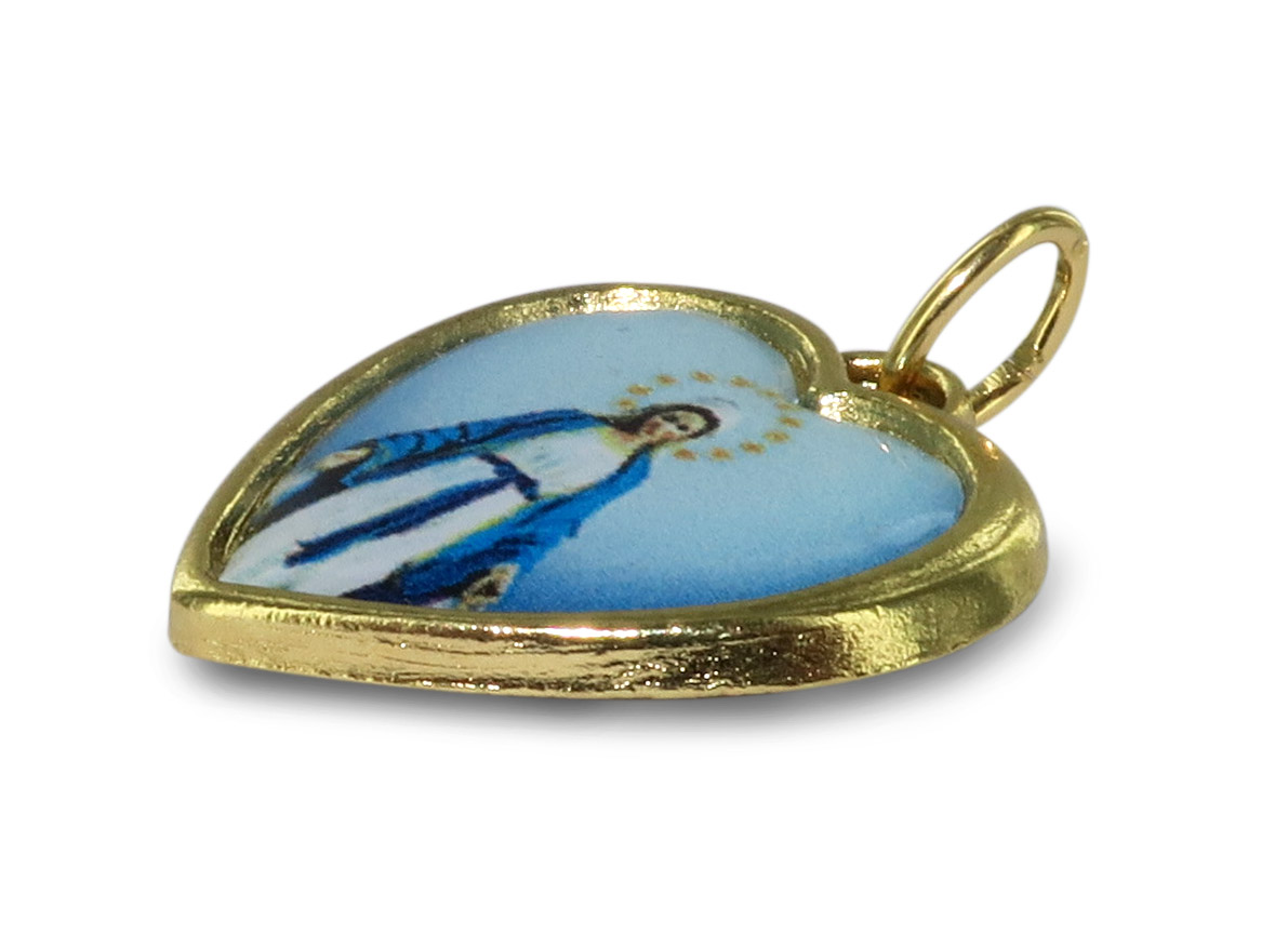 Medaglia cuore con resina Madonna Miracolosa
