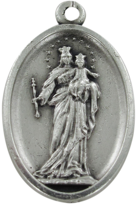 Medaglia Don Bosco e Madonna Ausiliatrice ovale in metallo ossidato - 2,5 cm