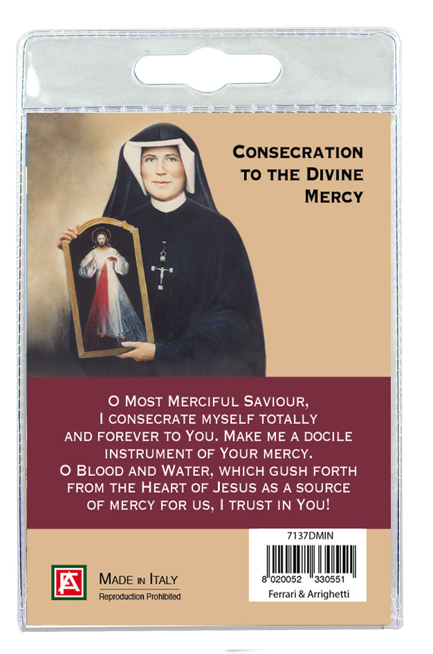 La medaglia, in metallo nichelato, ha un cordino in stoffa e su di essa vi è la resina raffigurante Gesù Misericordioso. La medaglia misura 2,5 centimetri e verrà consegnata in un blister. All'interno del blister c'è un cartoncino rappresentante Gesù Misericordioso, e sul retro vi è stampata una preghiera dedicata a lui.
