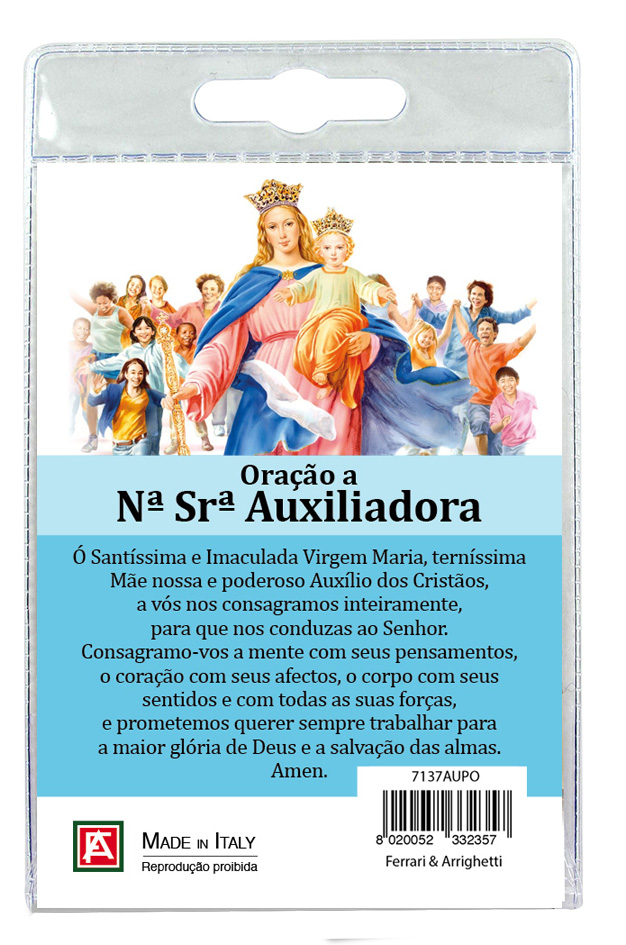 Medaglia Madonna Ausiliatrice con laccio e preghiera in portoghese