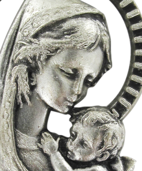 Medaglia raffigurante la Madonna con il Bambino in braccio.