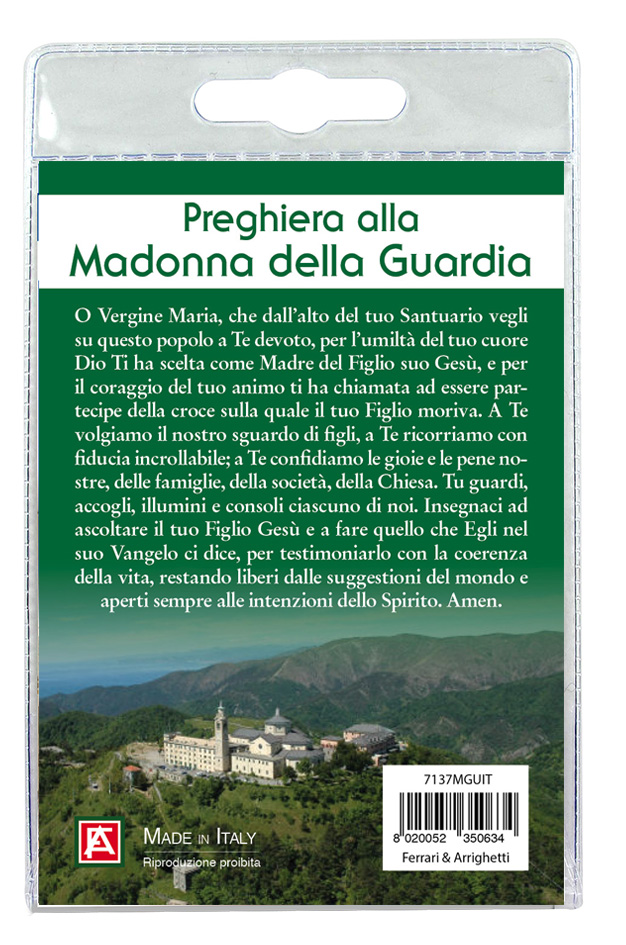 Medaglia Madonna della Guardia (GenovA con laccio e con preghiera in italiano