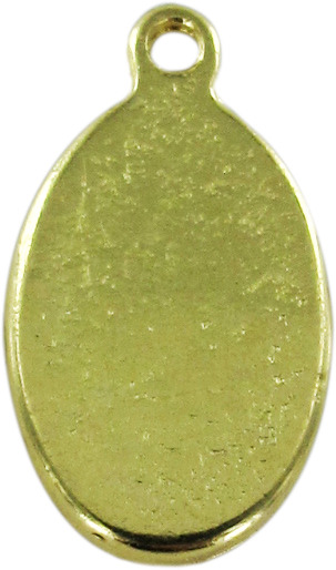 Medaglia raffigurante la Madonna di Lourdes. L'immagine della Vergine è ricoperta da uno strato di resina trasparente che rende i colori lucidi e ben visibili. Il prodotto misura 1,5 cm ed è realizzato in ITALIA.