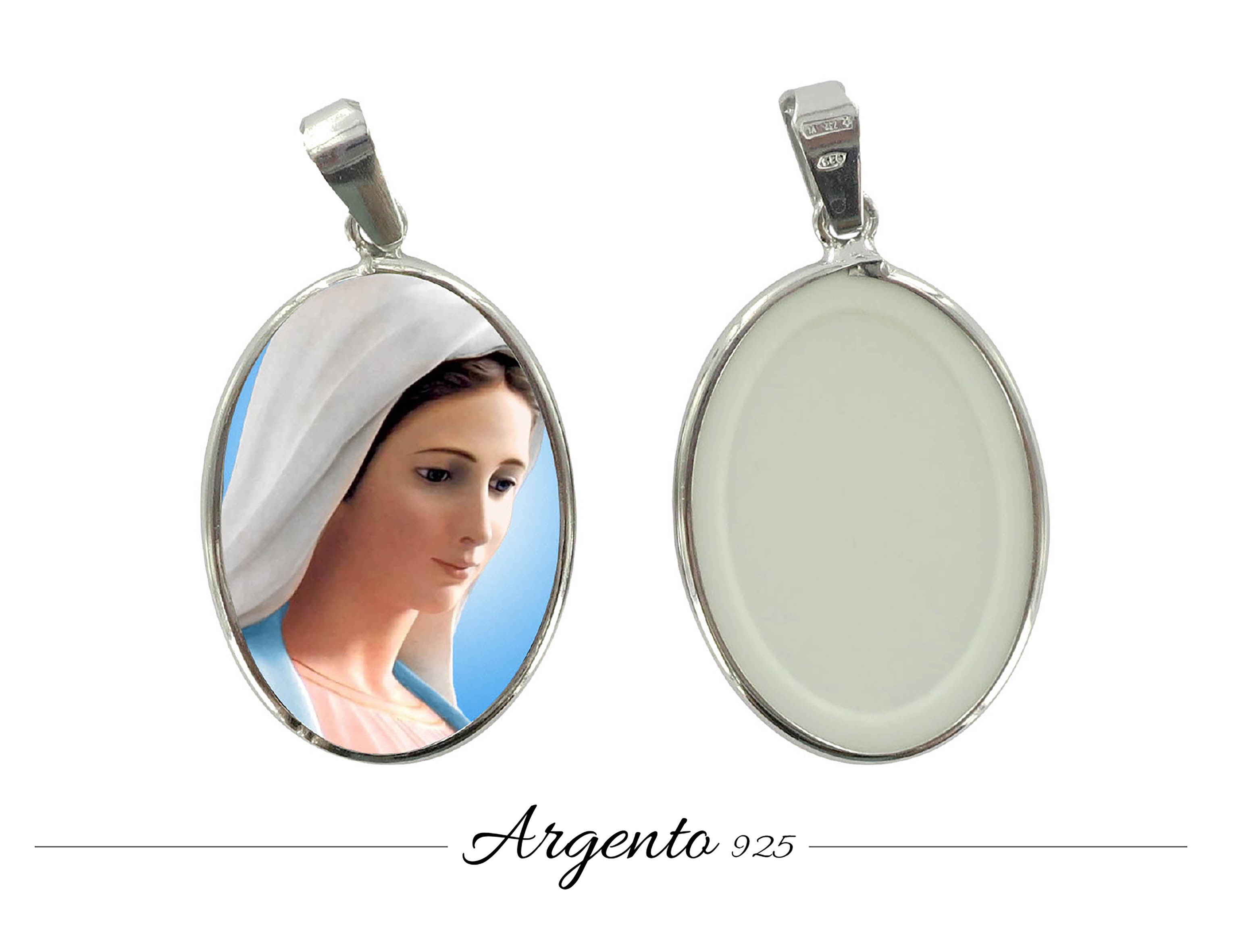 Medaglia Madonna di Medjugorje ovale in argento 925 e porcellana -3 cm
