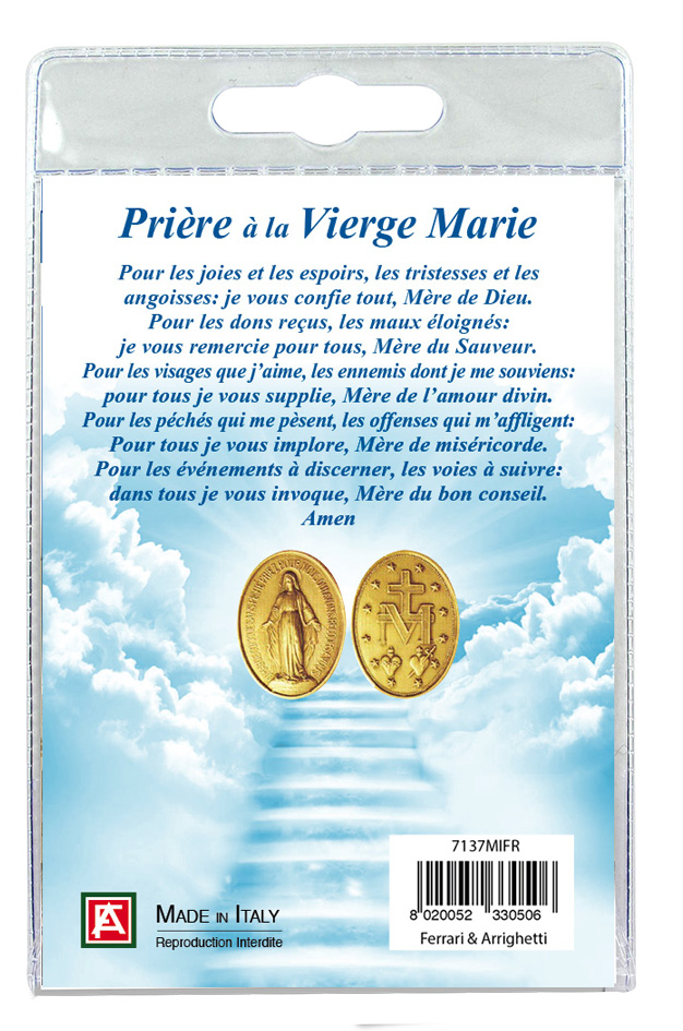 Medaglia Miracolosa con laccio in blister con preghiera in francese