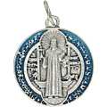 Medaglia di San Benedetto tonda in metallo argentato con smalto.