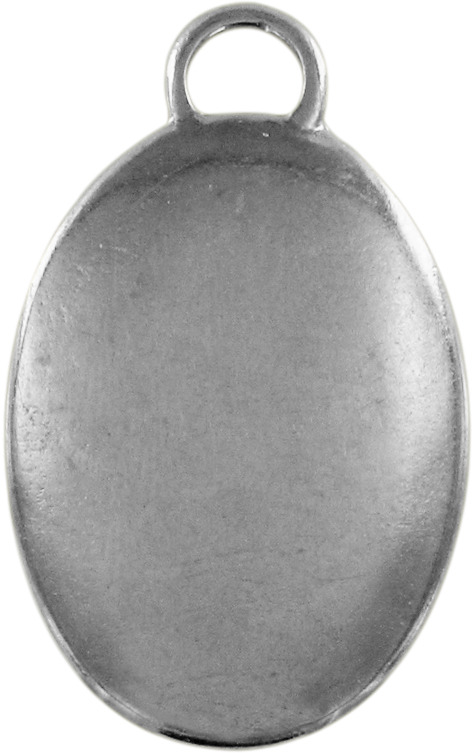 L'immagine del Santo è ricoperta da uno strato di resina trasparente che rende i colori lucidi e ben visibili. Questa immagine è incastonata in una medaglia di metallo nichelato che misura cm 3,5. Il prodotto è realizzato in Italia.