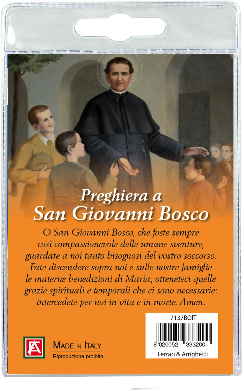 Medaglia San Giovanni Bosco con laccio e preghiera in italiano