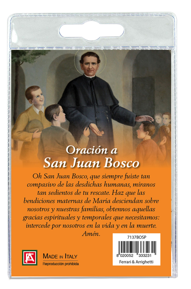 Medaglia San Giovanni Bosco con laccio e preghiera in spagnolo