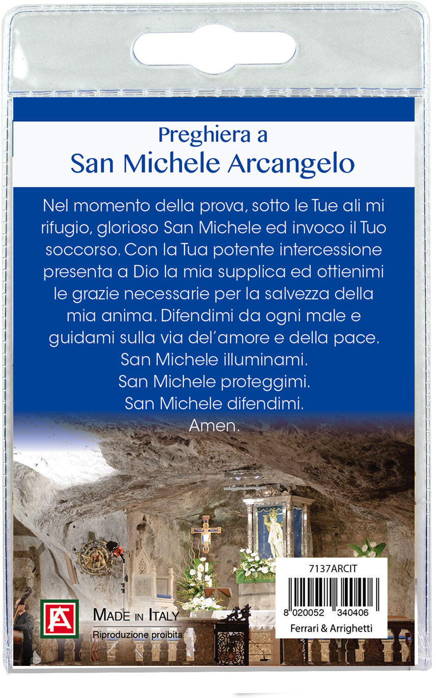 Medaglia San Michele Arcangelo A Monte S. Angelo) con laccio e preghiera in italiano
