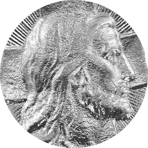 Medaglia in metallo nichelato di cm. 1,9 con contorni sagomati, raffigurante il Volto di Cristo.
