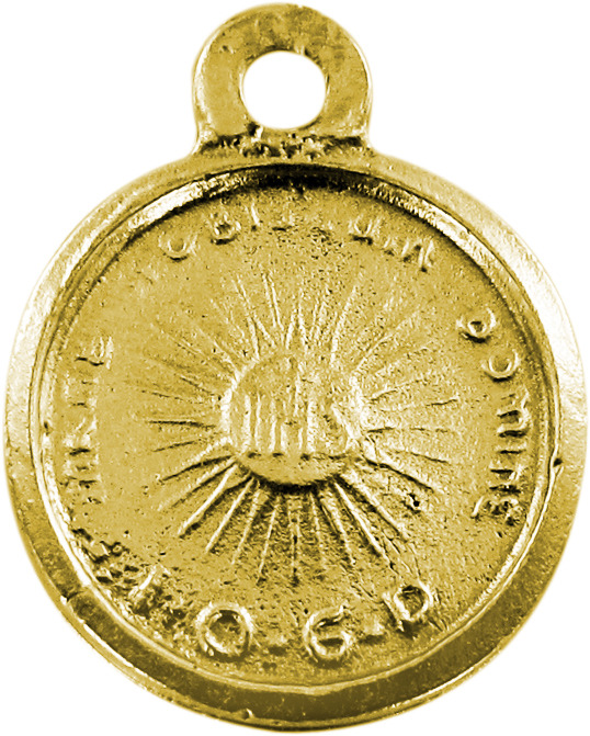 Medaglia tonda in metallo dorato raffigurante il Volto di Cristo di misura 1,5 x 1,5 cm.