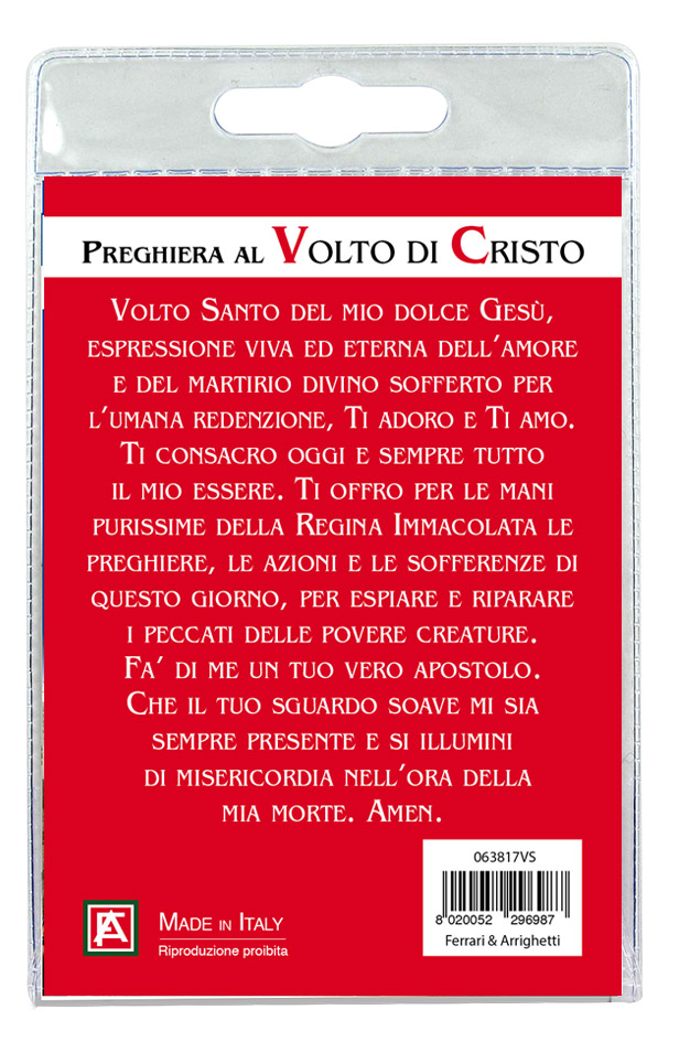 La medaglia, munita di cordoncino, verrà consegnata in una pratica bustina di plastica trasparente insieme ad una preghiera dedicata al soggetto rappresentato.