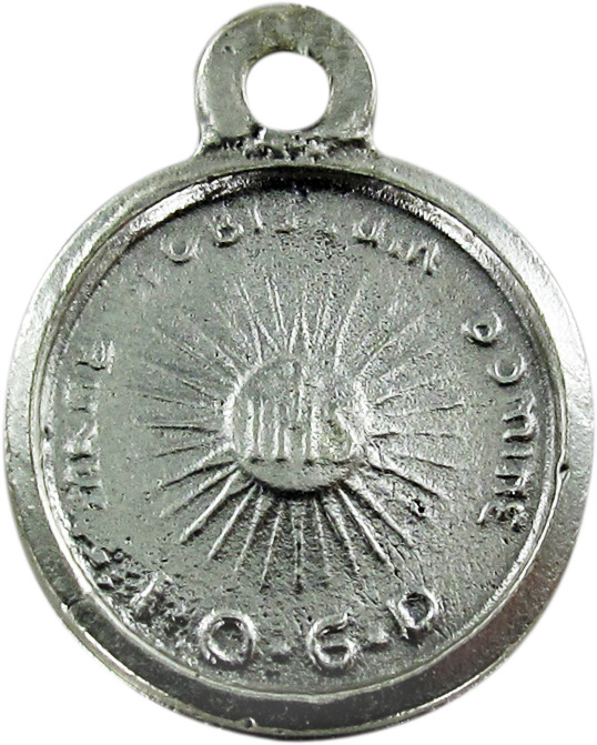 Medaglia tonda in metallo argentato raffigurante il Volto di Cristo di misura 1,5 x 1,5 cm.