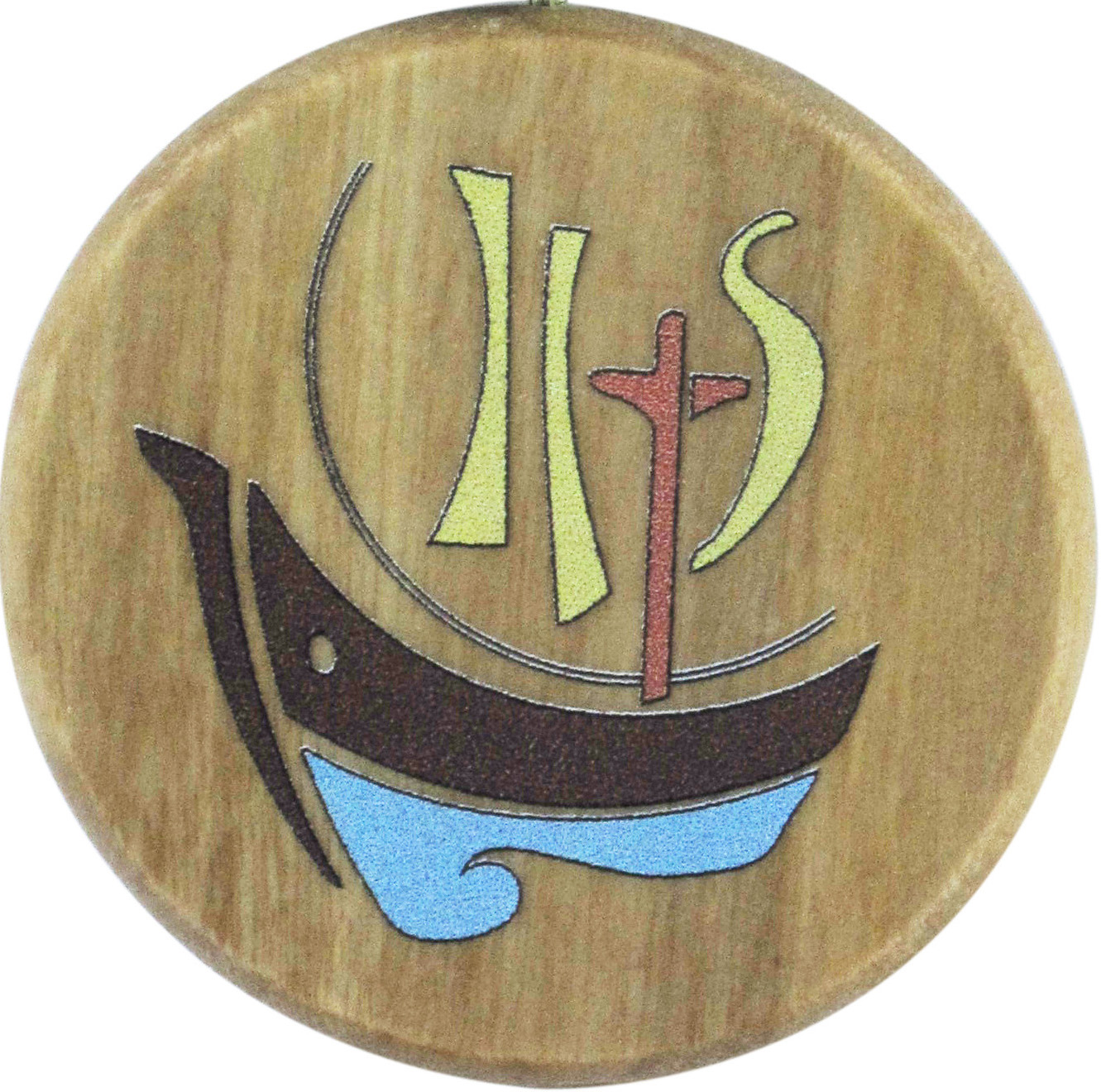 Ciondolo Anno della Fede tondo in legno d'ulivo con cordone - 3 cm