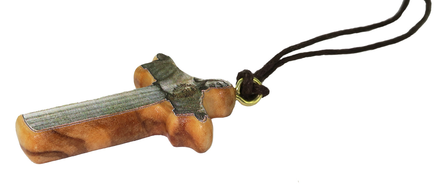 Ciondolo in legno d'ulivo con l'immagine serigrafata del Cristo Rei