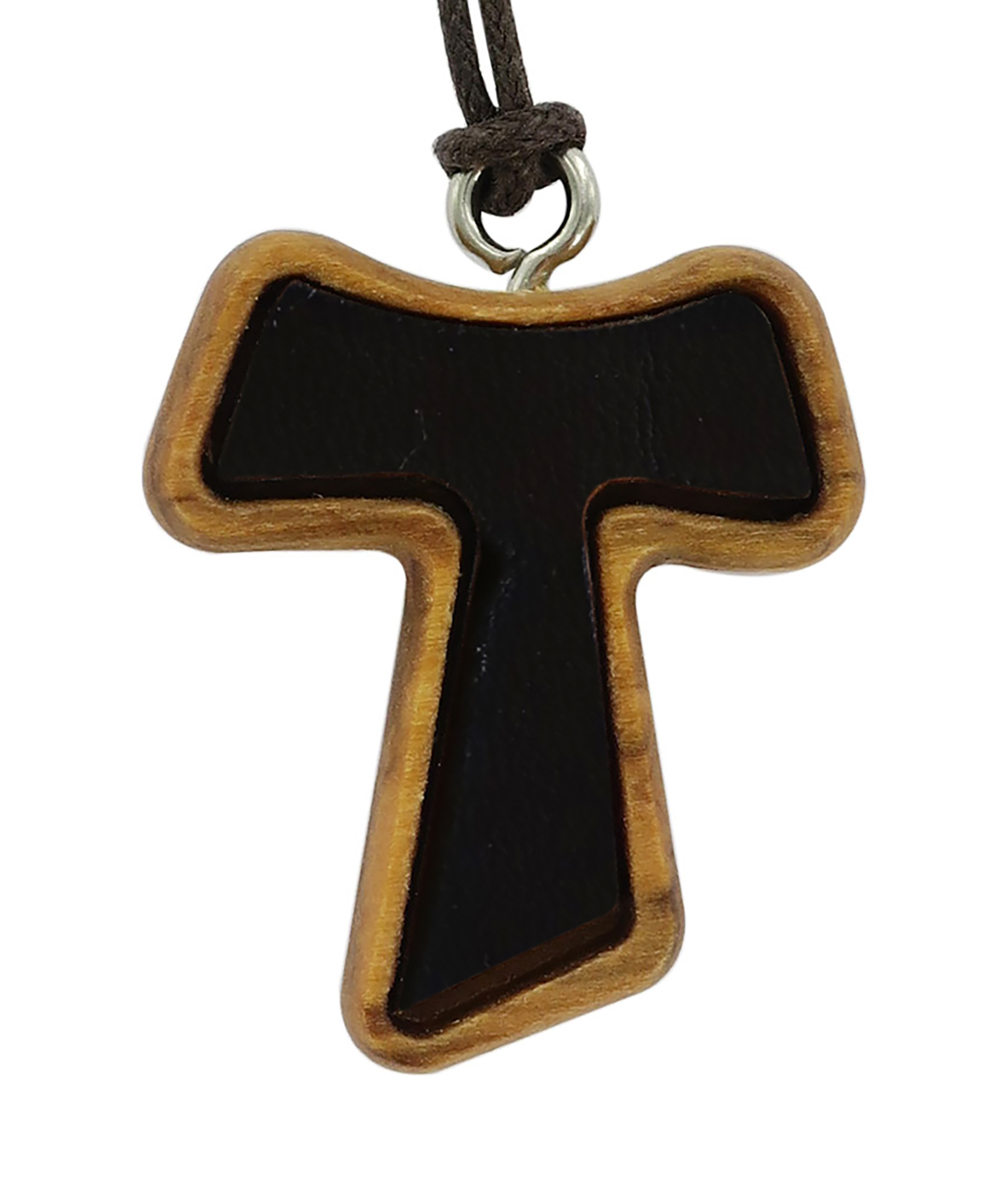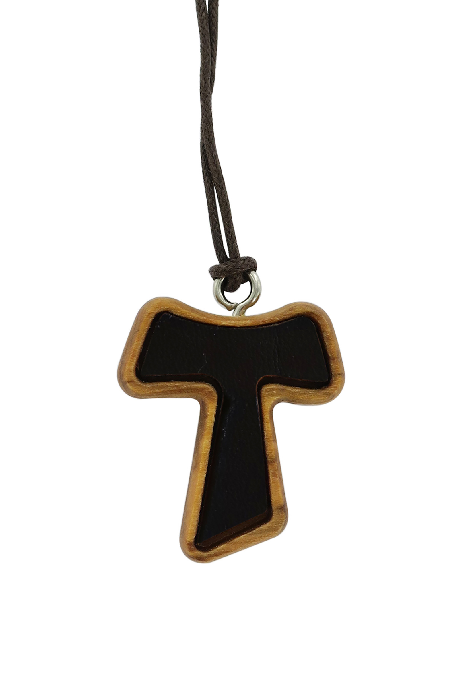 Croce Tau in legno di ulivo e cuoio con cordoncino (croce di San Francesco d'Assisi) - 2,5 cm