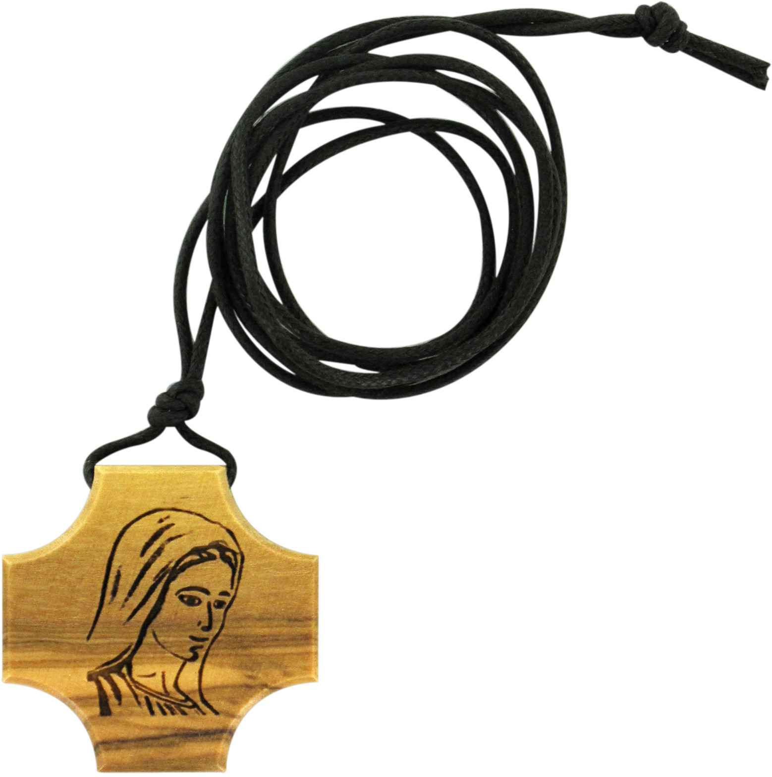 Croce in ulivo con inciso il volto di Maria Santissima.